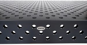 Najważniejszą cechą stołu SPARTUS MAXIMUS D28 jest azotowana powierzchnia blatu, która znacząco zwiększa twardość, odporność na ścieranie, korozję i wysoką temperaturę. Dzięki procesowi azotowania stal S355J2+N zachowuje idealne parametry robocze nawet przy intensywnej eksploatacji, typowej dla produkcji wielkoseryjnej i konstrukcji wielkogabarytowych.