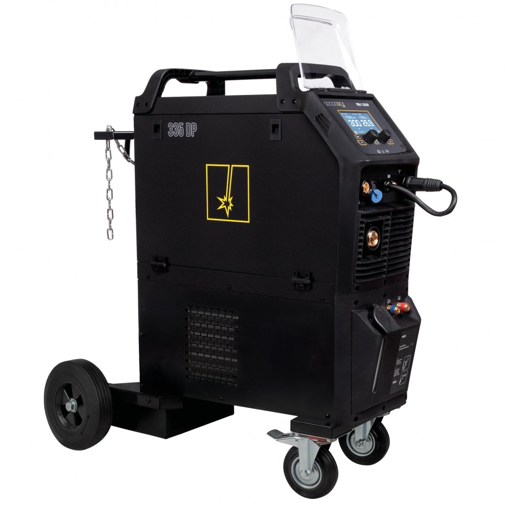 Wyposażenie: • SPARTUS® ProMIG 335DP • chłodnica • Hypercoolant – płyn chłodzący 5l • zestaw jezdny • Instrukcja obsługi