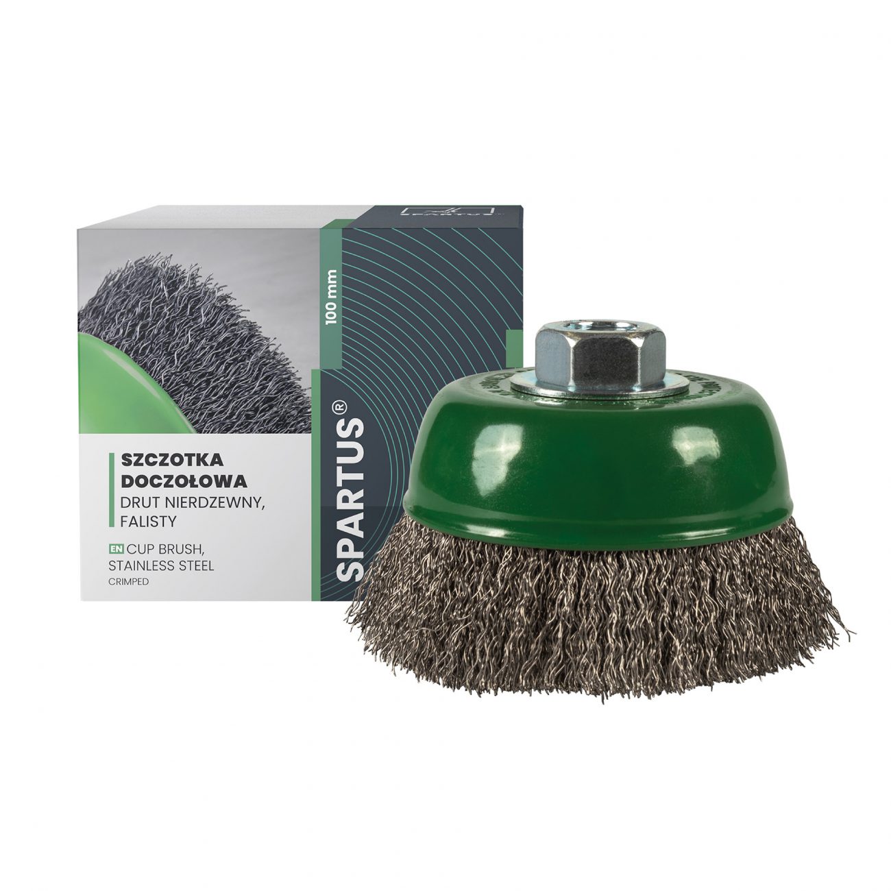 Szczotka doczołowa SPARTUS wykonana z wysokiej jakości drutu nierdzewnego to niezawodne narzędzie do pracy ze szlifierkami kątowymi. Doskonale sprawdza się przy obróbce stali nierdzewnej i kwasoodpornej, zwłaszcza na dużych, płaskich powierzchniach. Zapewnia szybkie i bezpieczne usuwanie zanieczyszczeń bez ryzyka zanieczyszczenia materiału czyszczonego.