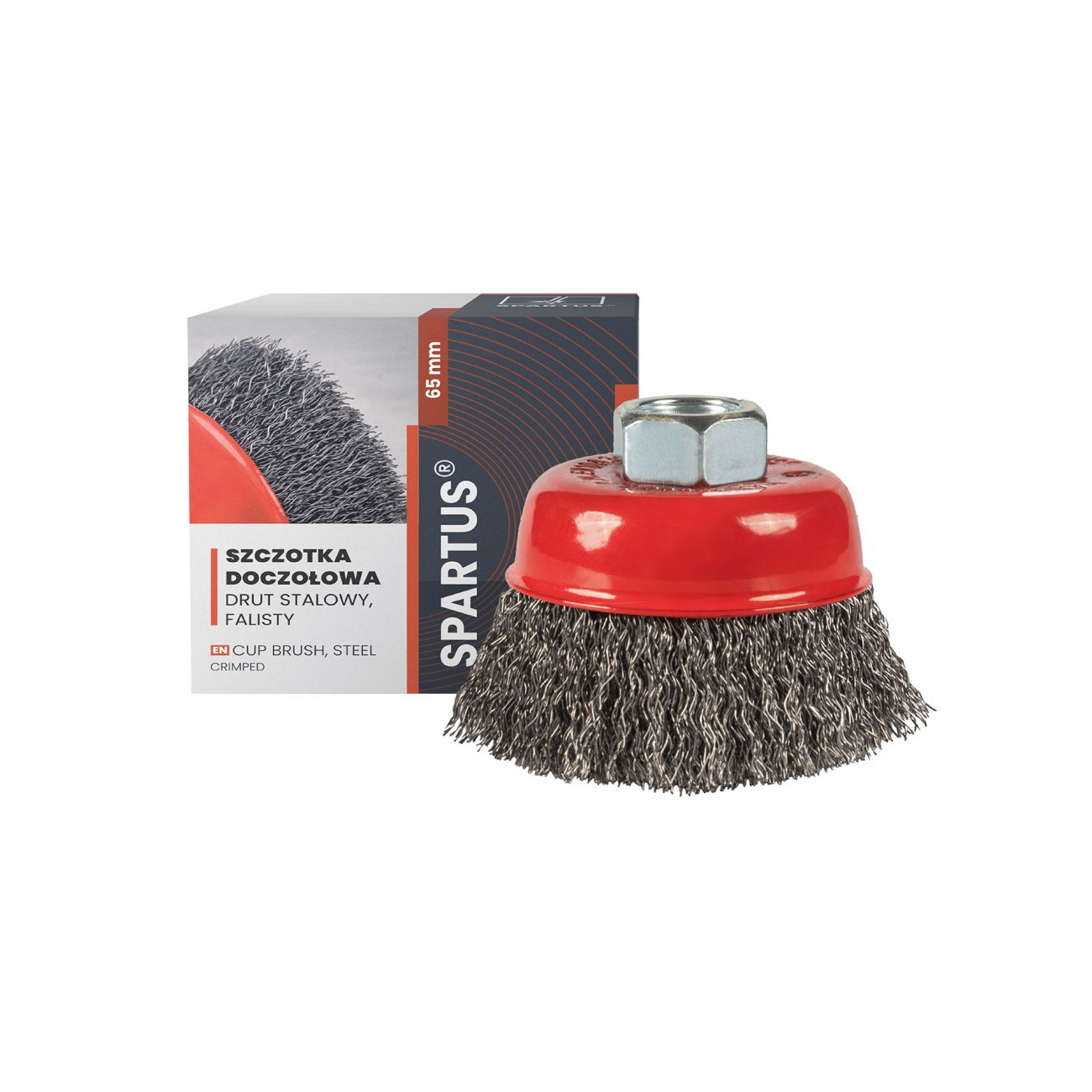 Szczotka doczołowa SPARTUS to solidne narzędzie do szlifierek kątowych, wykonane z wytrzymałego drutu stalowego. Idealnie sprawdza się w pracy na dużych, płaskich powierzchniach, zapewniając szybkie i skuteczne usuwanie zanieczyszczeń.