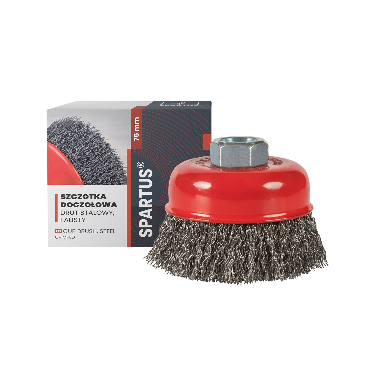 Szczotka doczołowa SPARTUS to solidne narzędzie do szlifierek kątowych, wykonane z wytrzymałego drutu stalowego. Idealnie sprawdza się w pracy na dużych, płaskich powierzchniach, zapewniając szybkie i skuteczne usuwanie zanieczyszczeń.