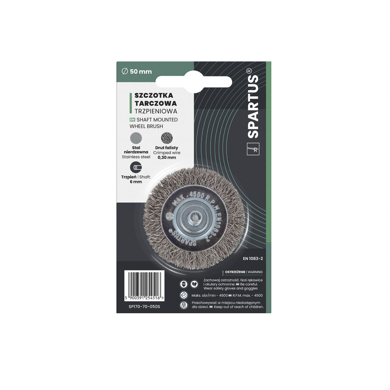 Szczotka tarczowa SPARTUS z drutu nierdzewnego, osadzona na trzpieniu, to idealne rozwiązanie do pracy z materiałami wymagającymi czystości i odporności na korozję. Przeznaczona do wiertarek oraz szlifierek prostych, świetnie sprawdza się przy czyszczeniu stali nierdzewnej, kwasoodpornej i metali kolorowych – także w trudno dostępnych miejscach.