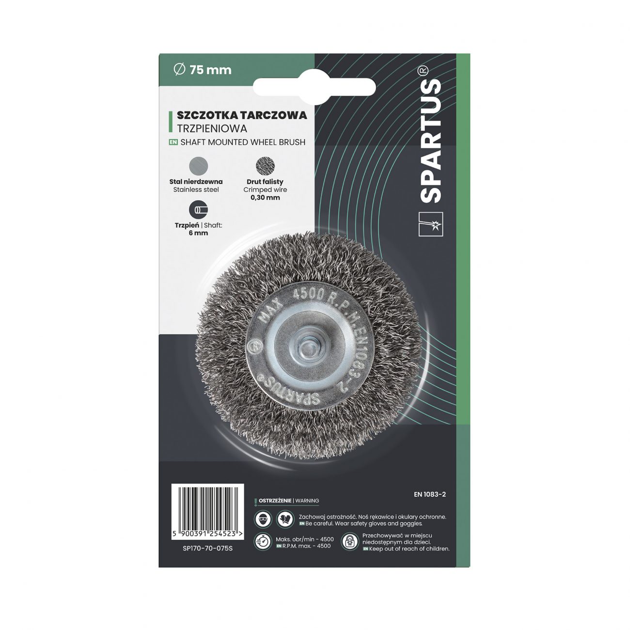 Szczotka tarczowa SPARTUS z drutu nierdzewnego, osadzona na trzpieniu, to idealne rozwiązanie do pracy z materiałami wymagającymi czystości i odporności na korozję. Przeznaczona do wiertarek oraz szlifierek prostych, świetnie sprawdza się przy czyszczeniu stali nierdzewnej, kwasoodpornej i metali kolorowych – także w trudno dostępnych miejscach.