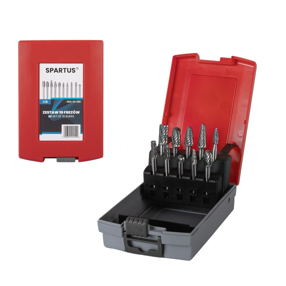 Zestaw dziesięciu frezów trzpieniowych SPARTUS to komplet, który powstał z myślą o wymagających specjalistach zajmujących się obróbką metali. Wykonane z wysokowytrzymałego węglika wolframu frezy zapewniają znakomitą ostrość, stabilność pracy oraz długą żywotność – nawet przy intensywnym użytkowaniu i pracy na wysokich obrotach. To idealne narzędzie dla warsztatów, produkcji i służb utrzymania ruchu.